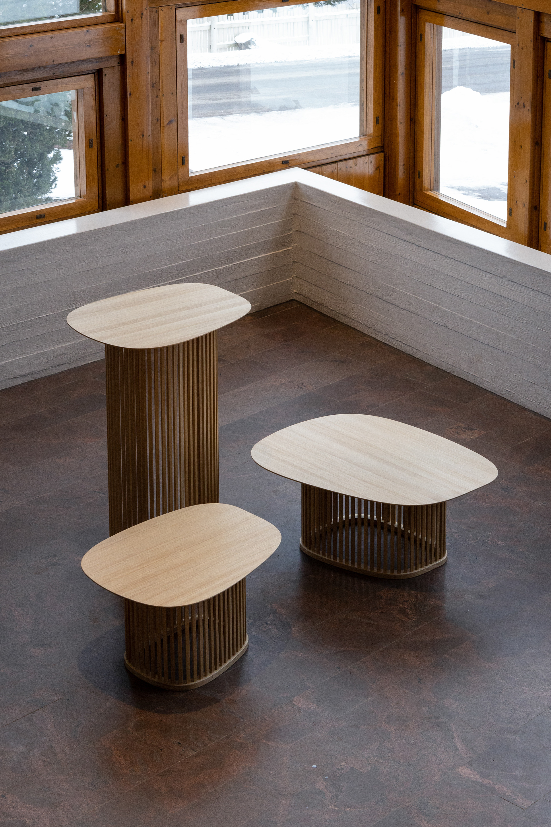 T03 – Table Series is a set of three tables. Table set includes 2 different sized coffee tables and bar table. t03 tables were part of the Habitare 2020 furniture fair protoshop exhibition. Material: Ash
